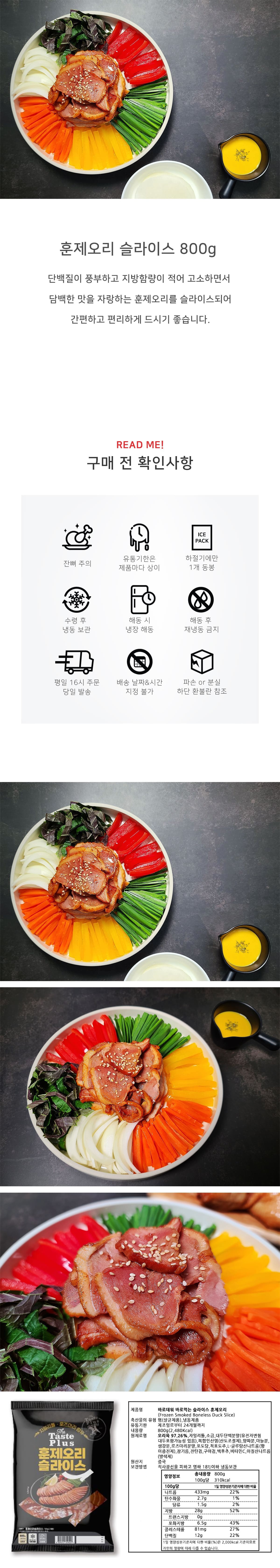 > [무료배송]가미 훈제오리 슬라이스 800g*10팩
