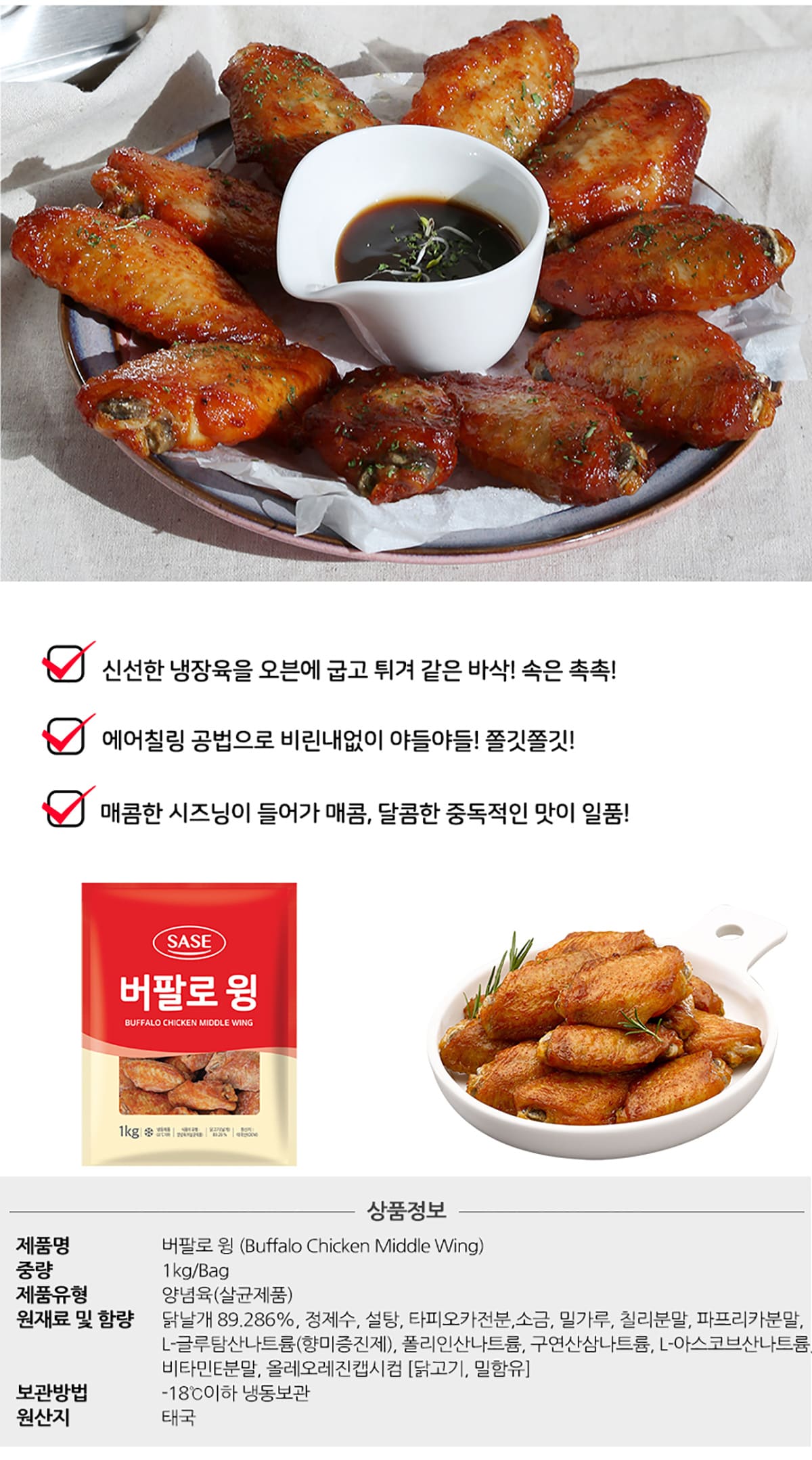 [무료배송]사세 버팔로윙 1kg*10팩